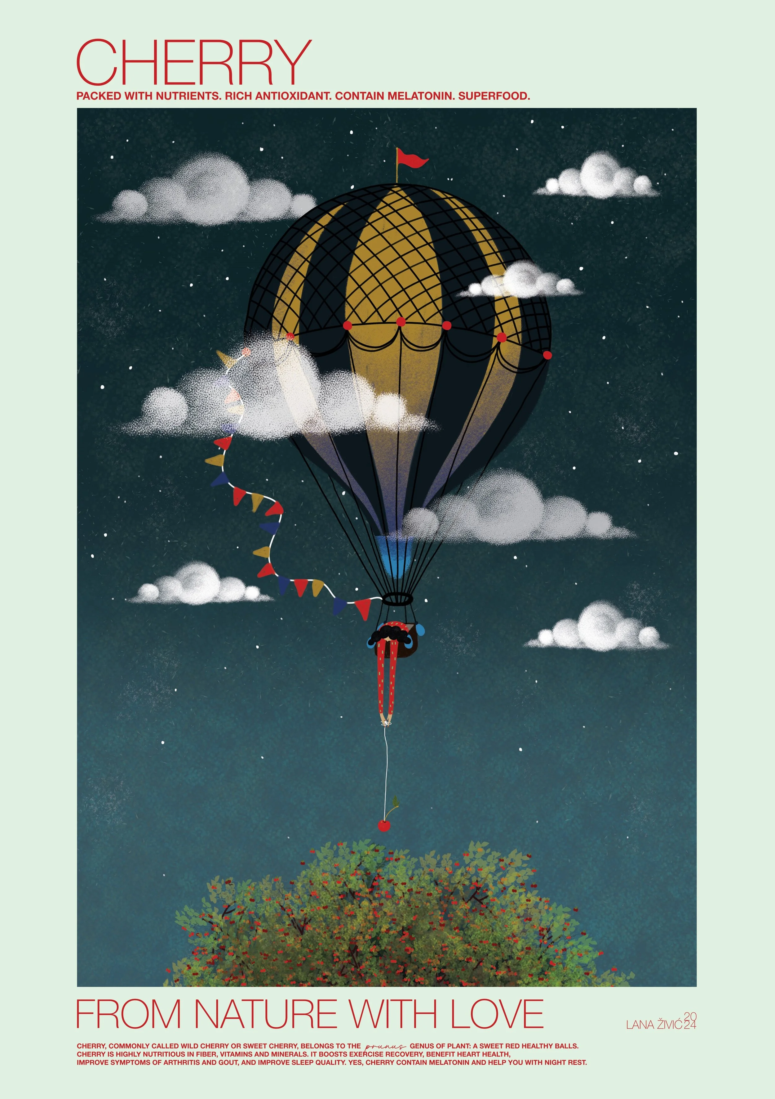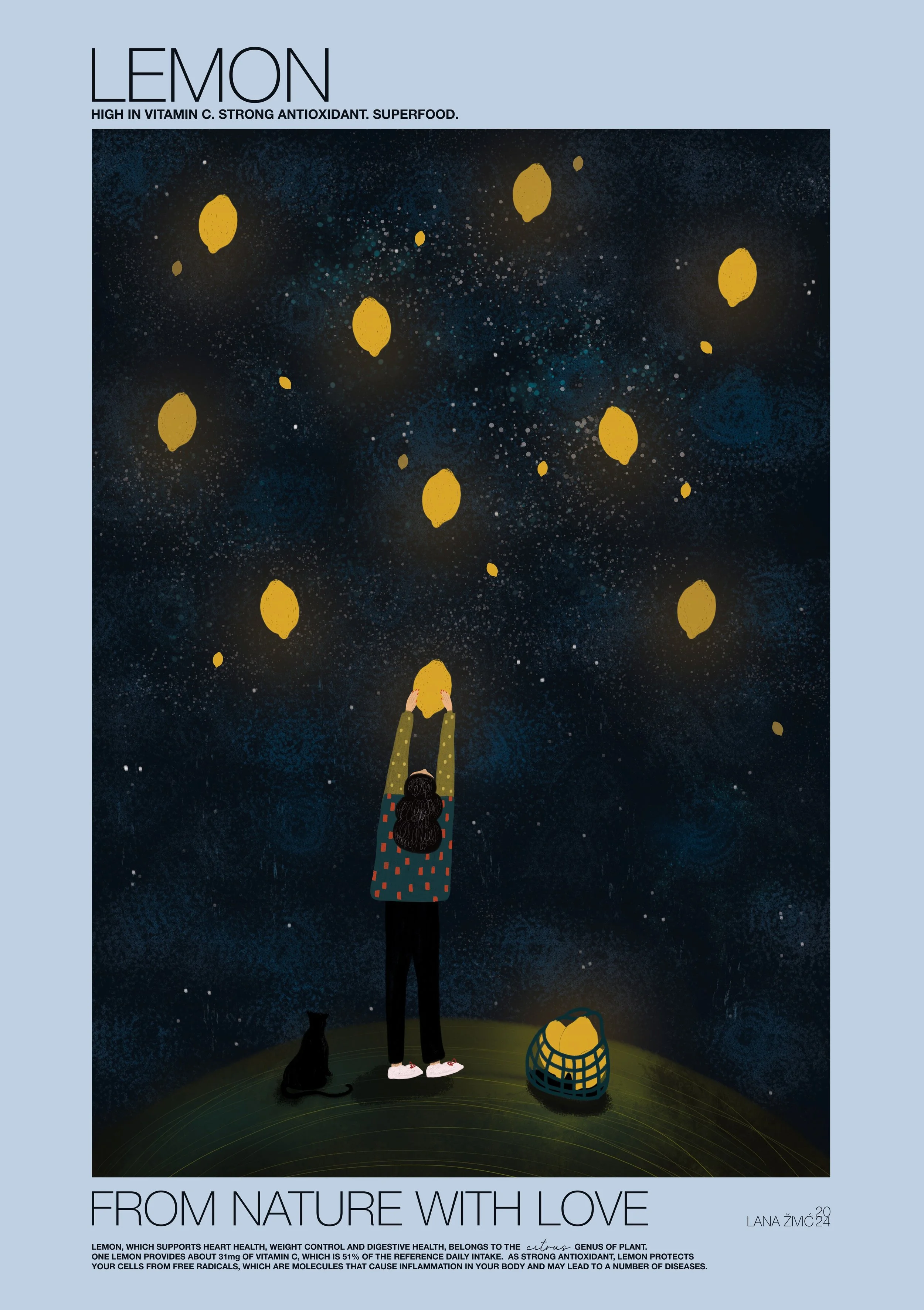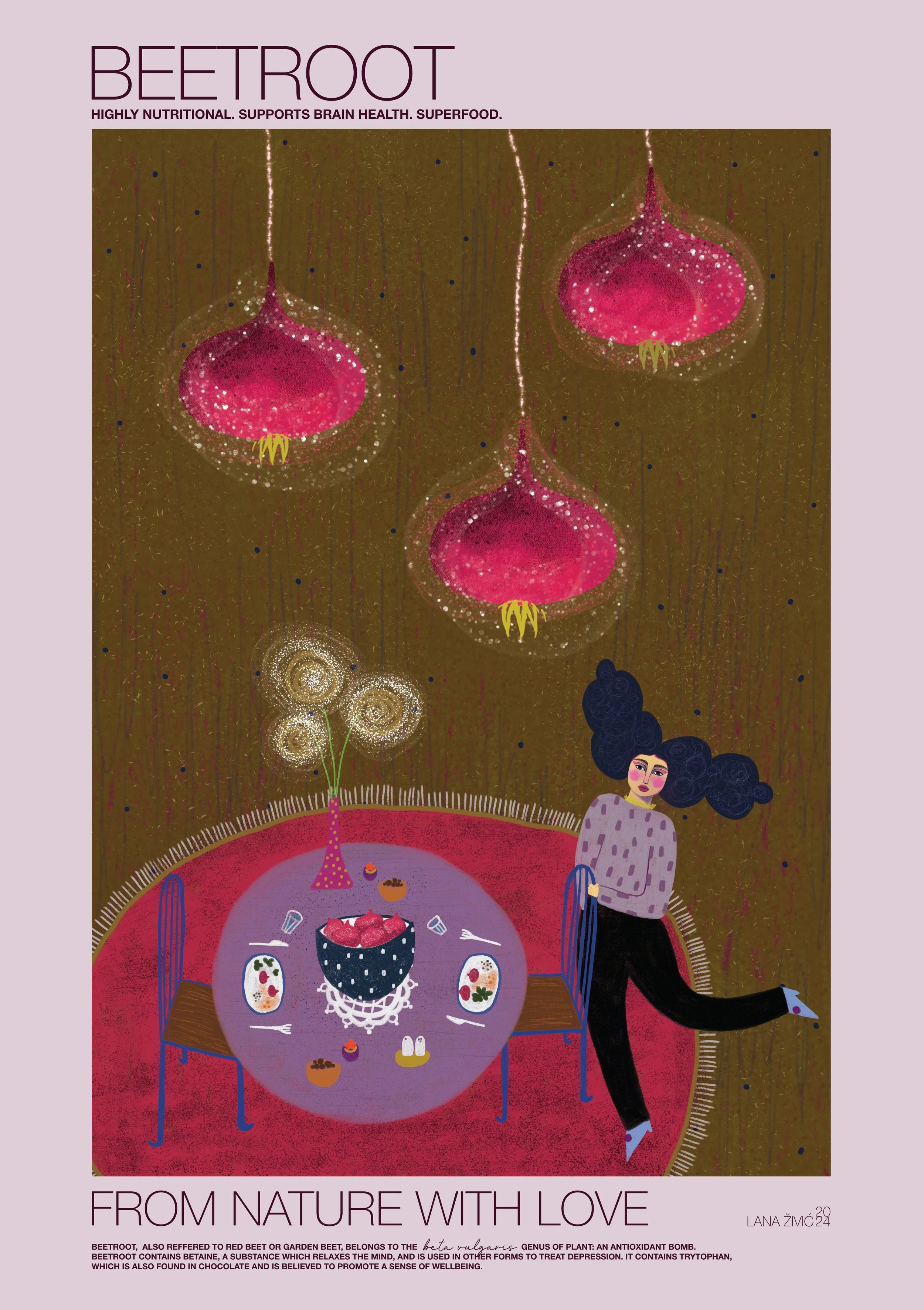 For the vegan organic bistro Zrno in Zagreb, I created a series of large-scale graphics celebrating the superfood ingredients grown in their own garden.